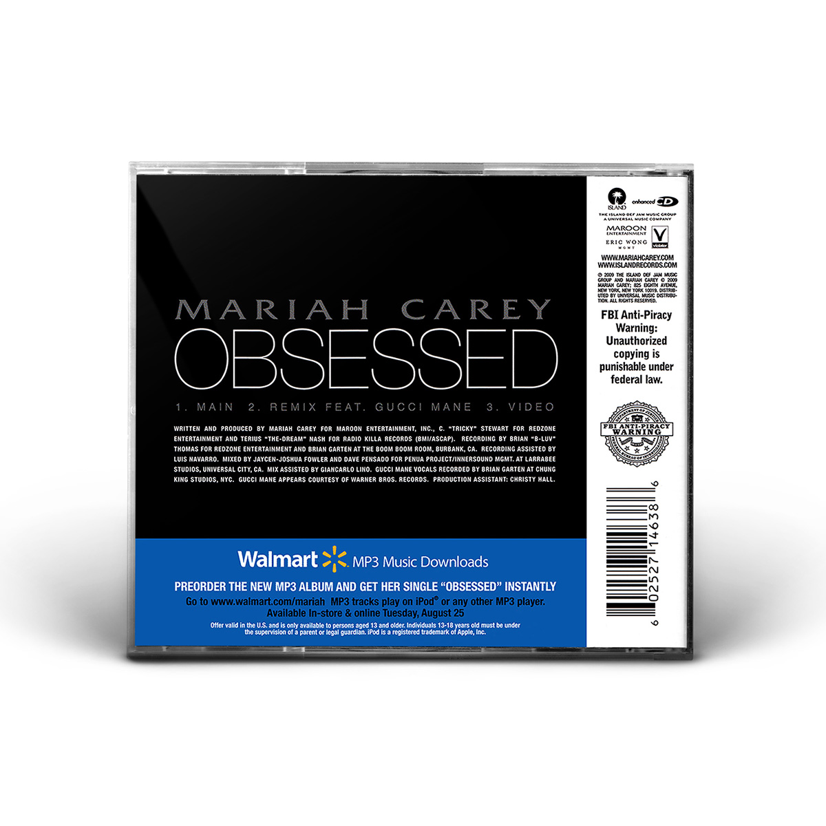In the United States, the “Obsessed” single was released on CD and 12" vinyl, both including the Album Version and the Gucci Mane Remix. The CD, sold exclusively by retailer Walmart, also includes the “Obsessed” music video.