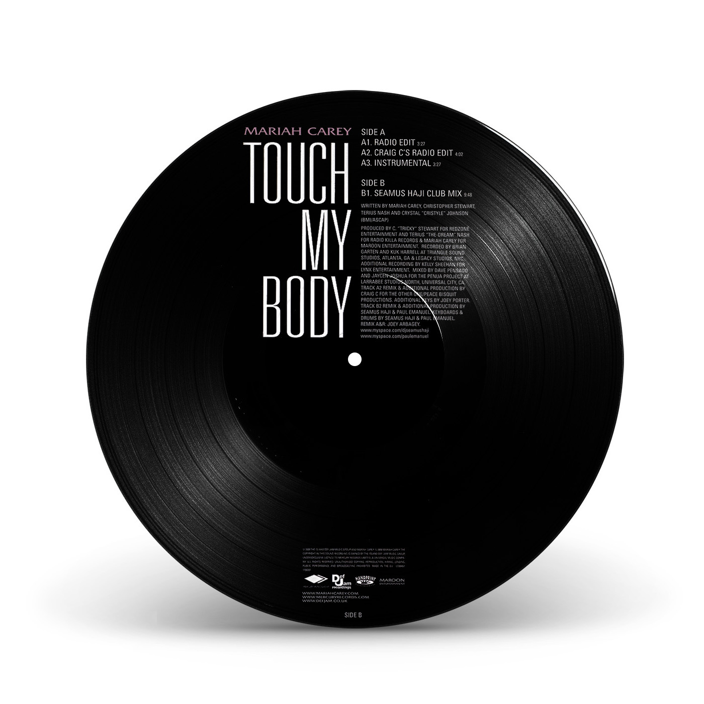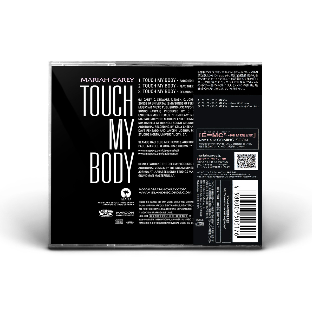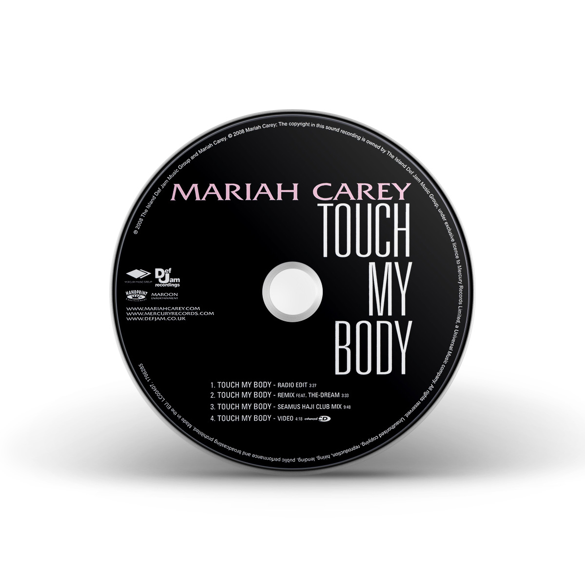 The European “Touch My Body” CD Single features the Radio Edit and the Seamus Haji Radio Edit of the song, while the Maxi Single — an enhanced CD — includes the Radio Edit, the Remix featuring The-Dream, the Seamus Haji Club Mix and the “Touch My Body” music video.