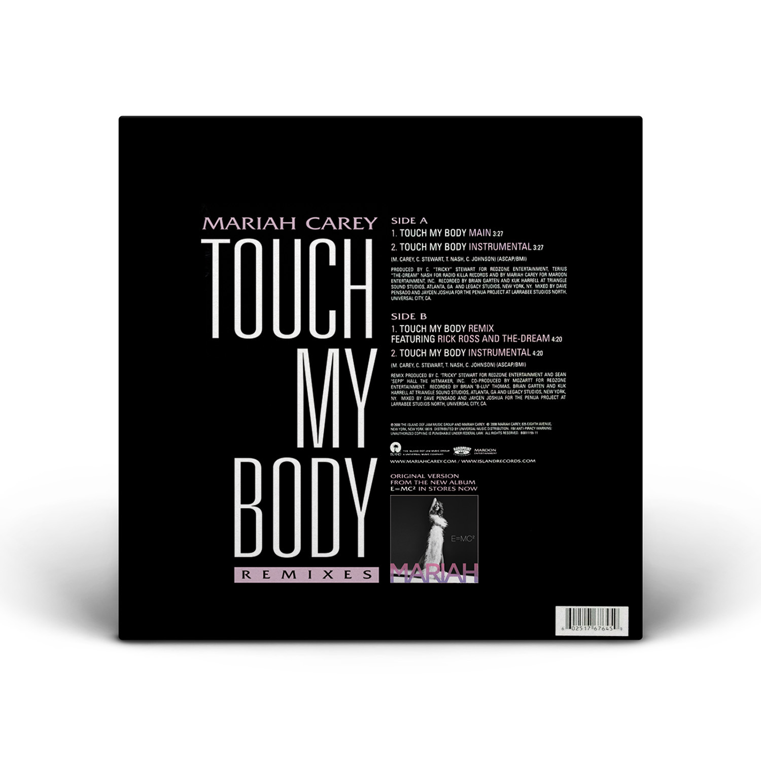 Chicago radio station B96 premiered “Touch My Body,” the lead single from Mariah's E=MC² album, on February 12, 2008. “Tricky and The-Dream were in the studio and Dream started to sing all these things like ‘with the camera up in here’ and all that stuff but he was talking about it from a guy's perspective and I was like, ‘Wait a minute. No, I have to turn this around,” Mariah explained. “I finished writing the record with a friend of mine, Cristyle Johnson, and we were coming from a girl's point of view and I was like, ‘Let me flip this a little and say, the camera's gonna leave with me when I do. And if you run your mouth and brag about this secret rendezvous, I will hunt you down’.”
