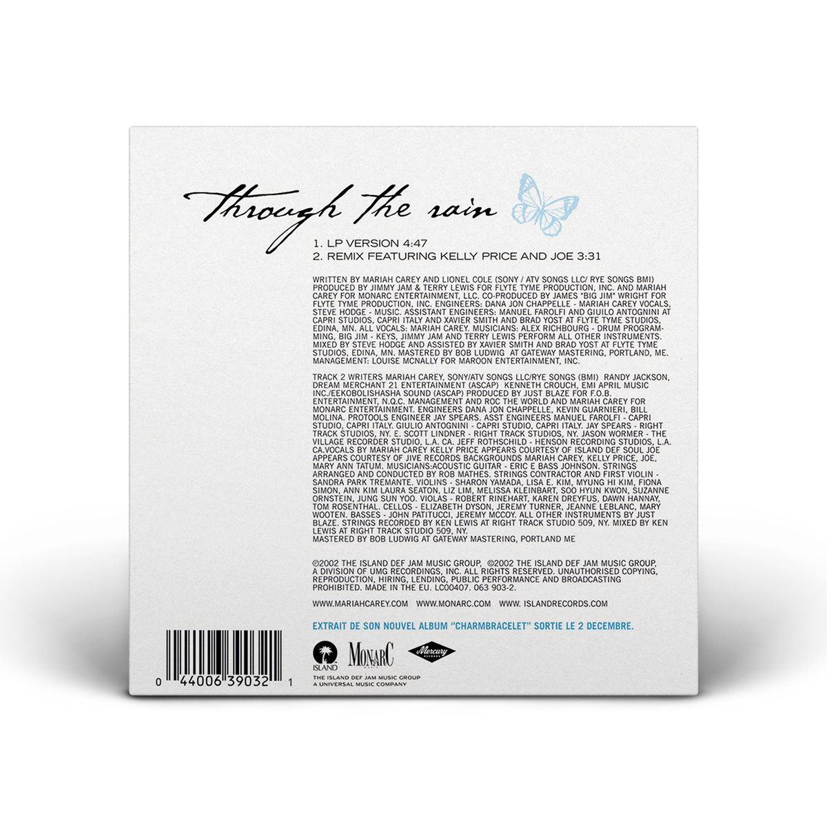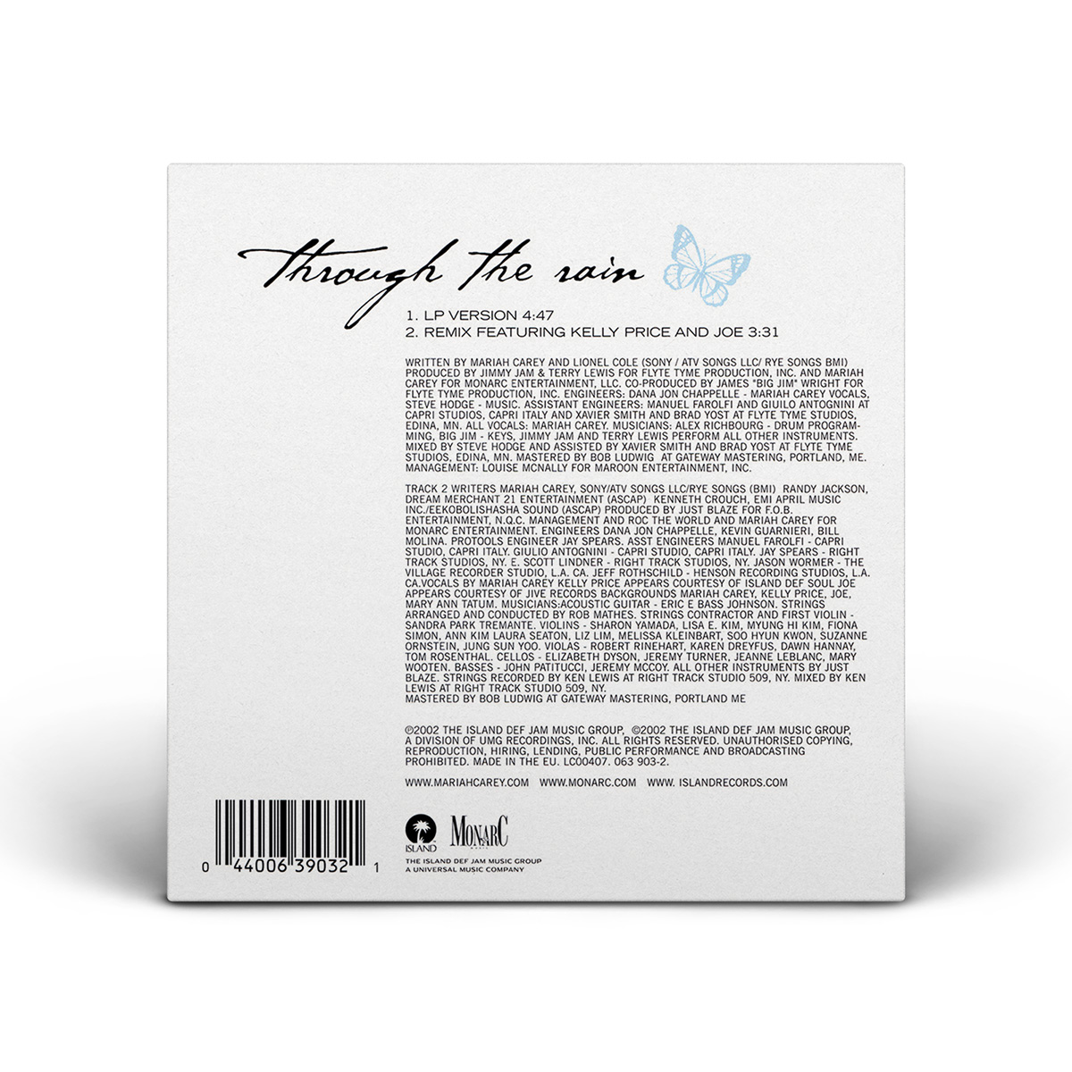 The Japanese “Through The Rain” CD Maxi Single includes the Album Version, the Remix featuring Kelly Price and Joe, the Full Intention Radio Edit and the Boris & Michi's Radio Mix of the song.