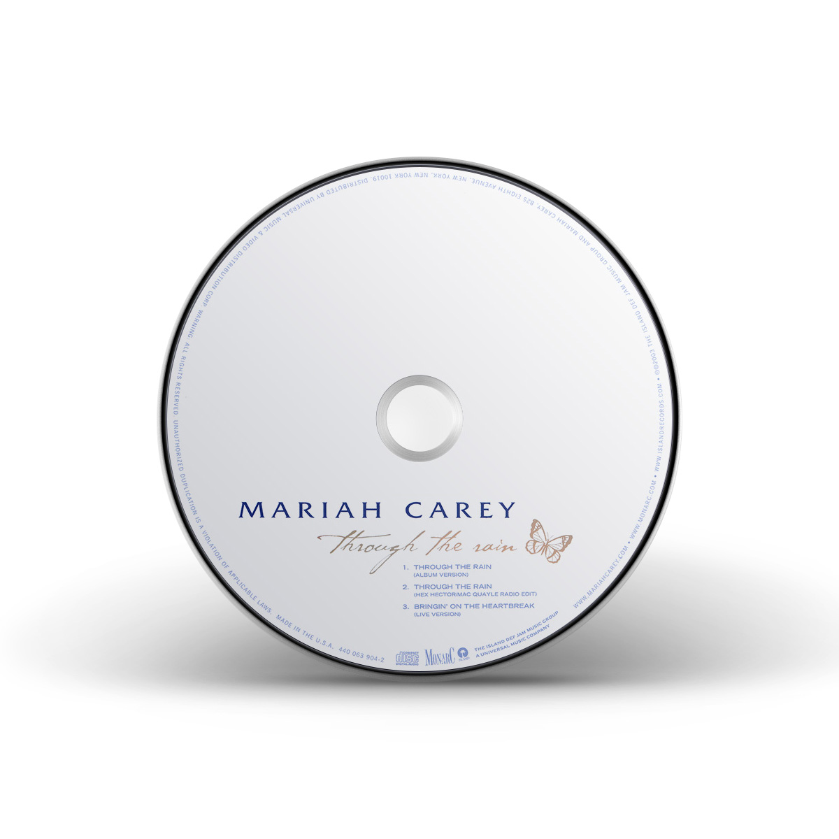 “Through The Rain” became available in Europe on November 11, 2002. The CD Single contains the Album Version and the Remix featuring Kelly Price and Joe, while the first Maxi Single includes two additional remixes: Full Intention Radio Edit and Boris & Michi's Radio Mix. A second CD Maxi Single was also issued, containing four versions of “Through The Rain”: Radio Edit, Hex Hector / Mac Quayle Radio Edit, Maurice Joshua Radio Edit and Full Intention Club Mix.