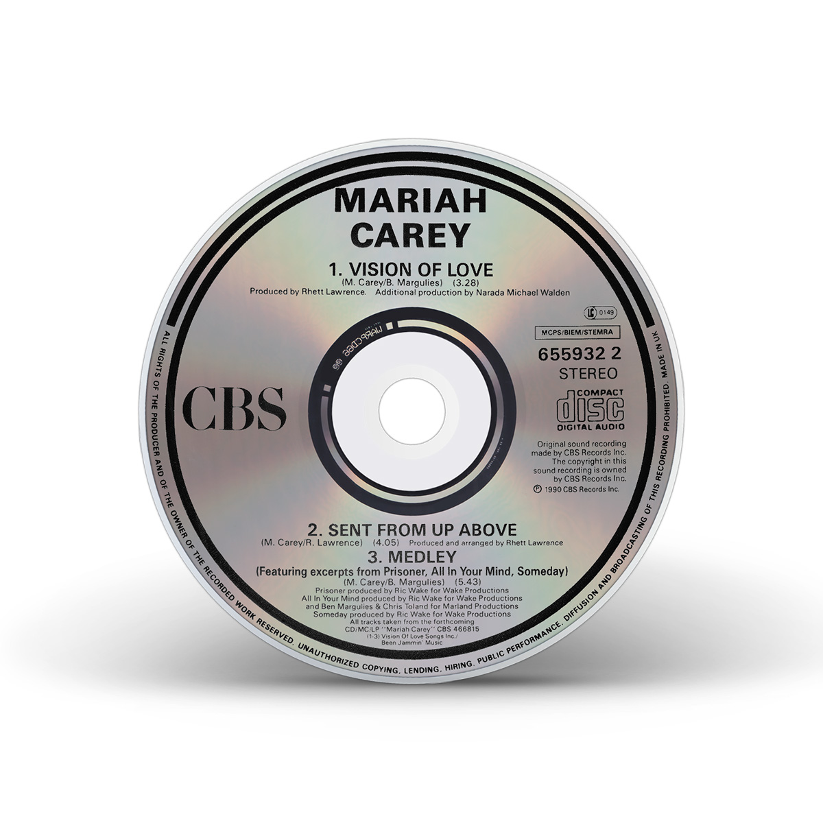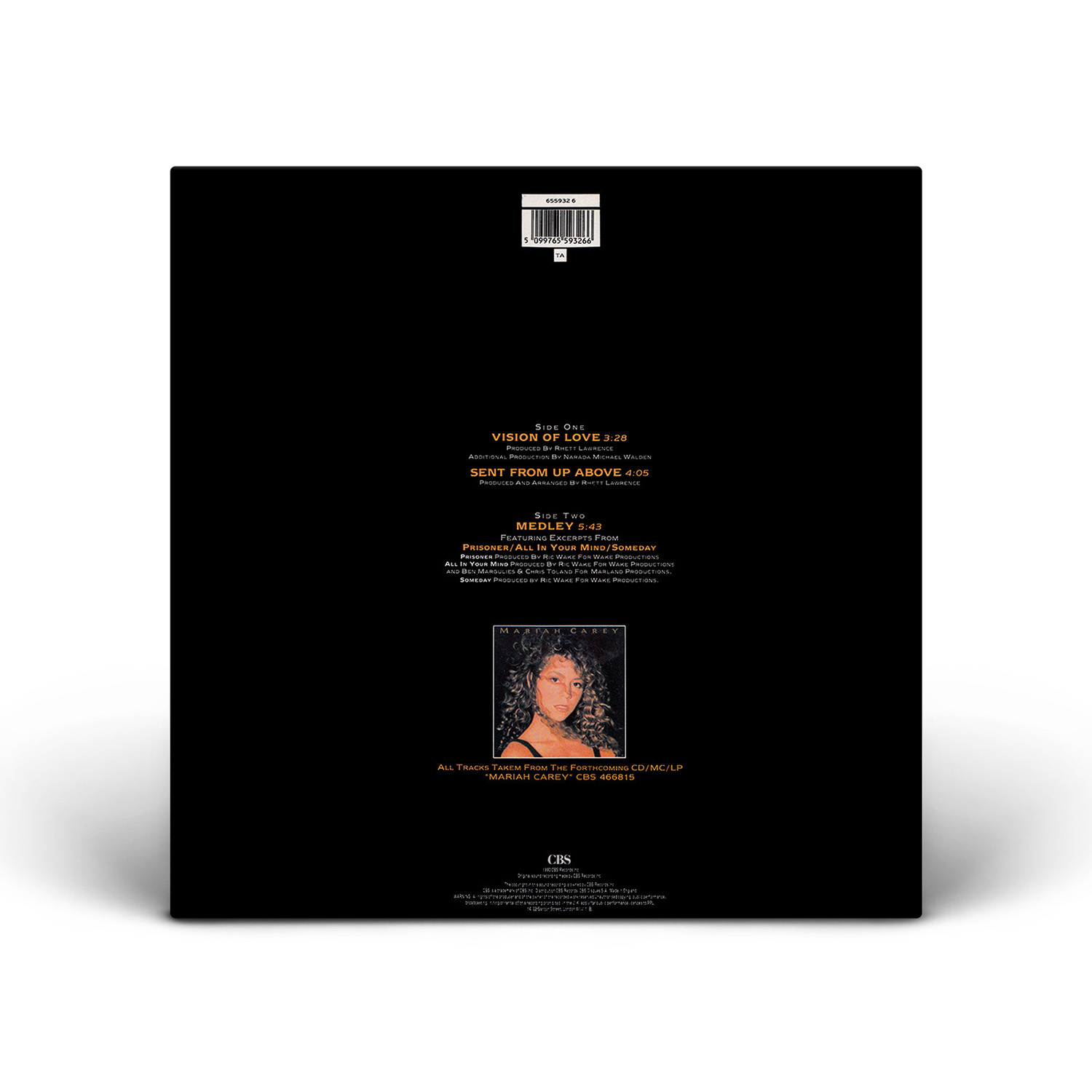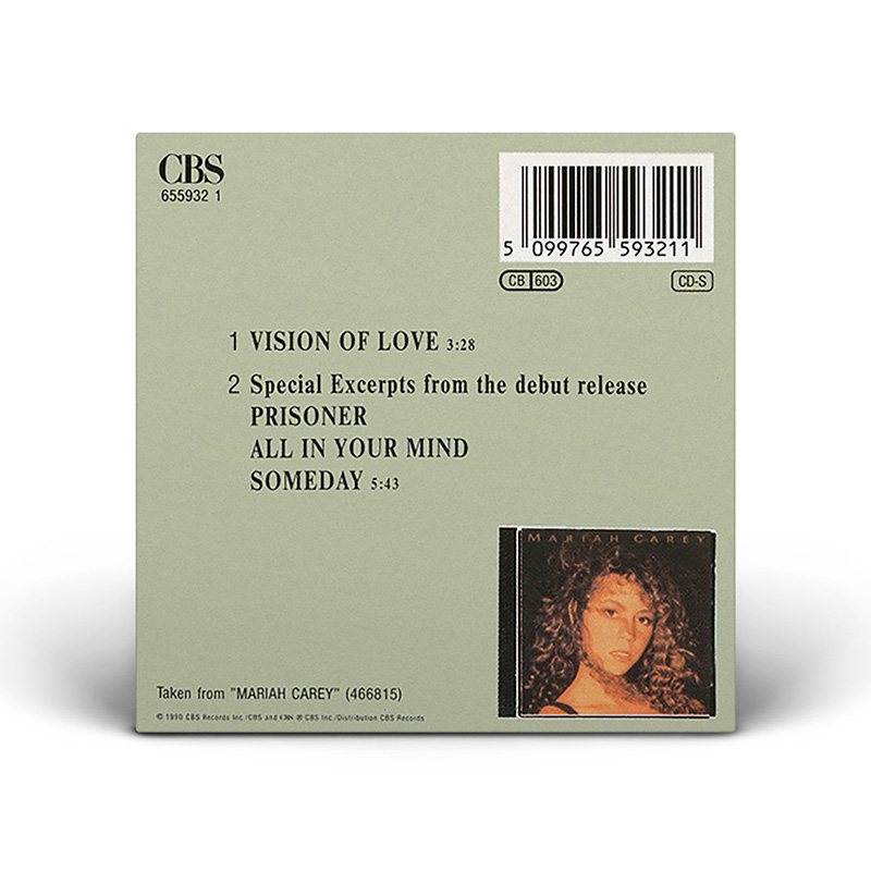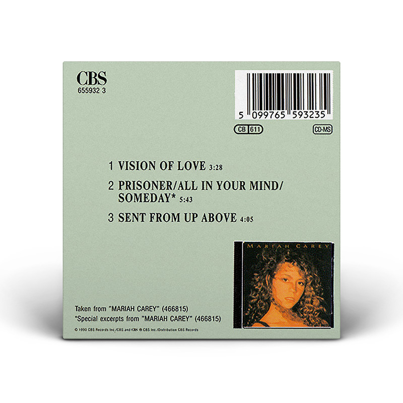 In Europe, the “Vision Of Love” Single was released on 3" CD and 7" Vinyl including the debut album medley. The Maxi Single — released on 3" CD and 12" Vinyl — also includes the song “Sent From Up Above.”