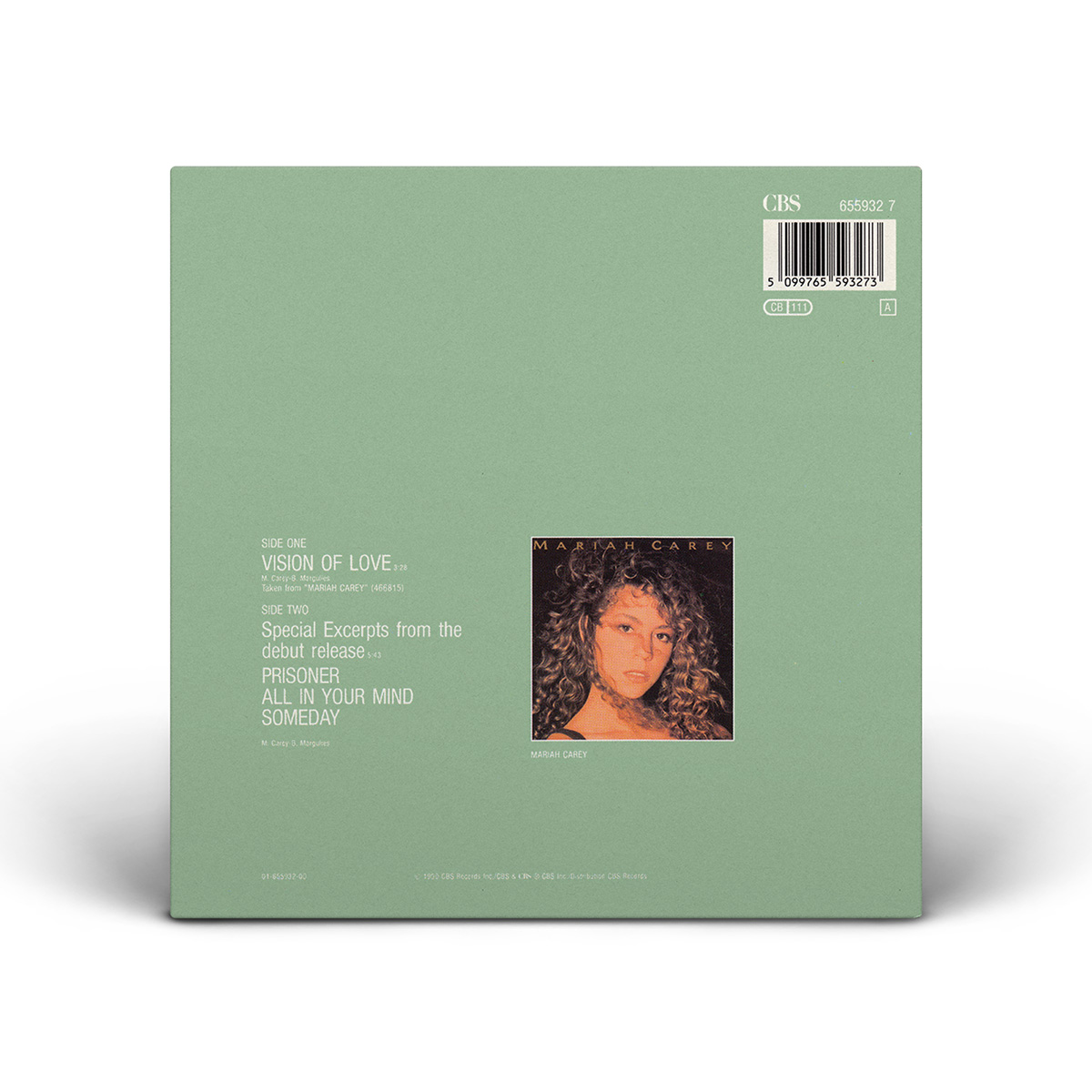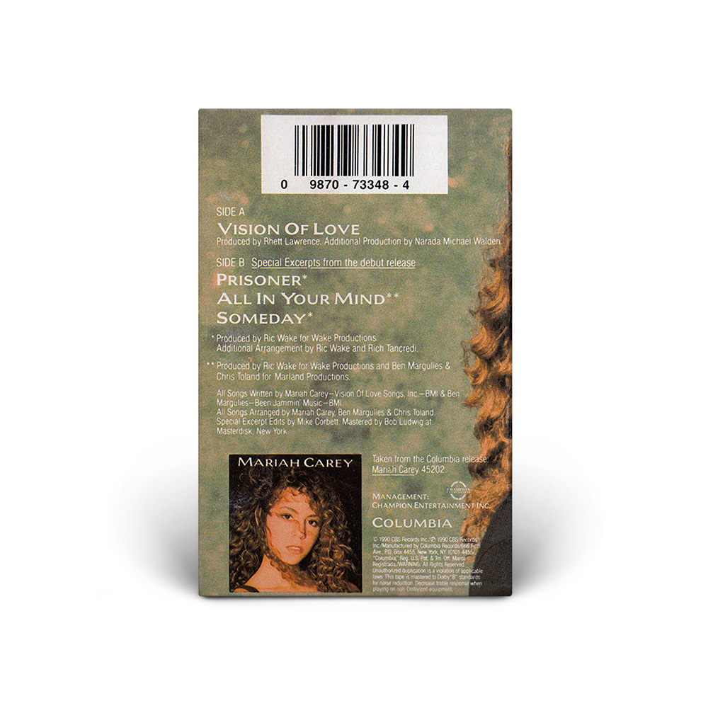 In the United States, “Vision Of Love” was released on Cassette, including excerpts of three songs from Mariah's debut album (“Prisoner,” “All In You Mind” and “Someday”) as the B-side.
