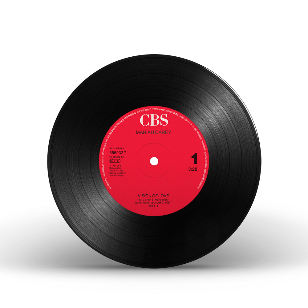 After debuting at number seventy-three on the Billboard Hot 100 during the week of June 2, 1990, “Vision Of Love” became Mariah's first number-one single on its tenth week, spending four consecutive weeks atop the chart. “Vision Of Love” won the Grammy award for Best Female Pop Vocal Performance, the Soul Train Music Award for Best Female R&B/Soul Single, and was certified Platinum by the Recording Industry Association of America (RIAA) on October 9, 2019.