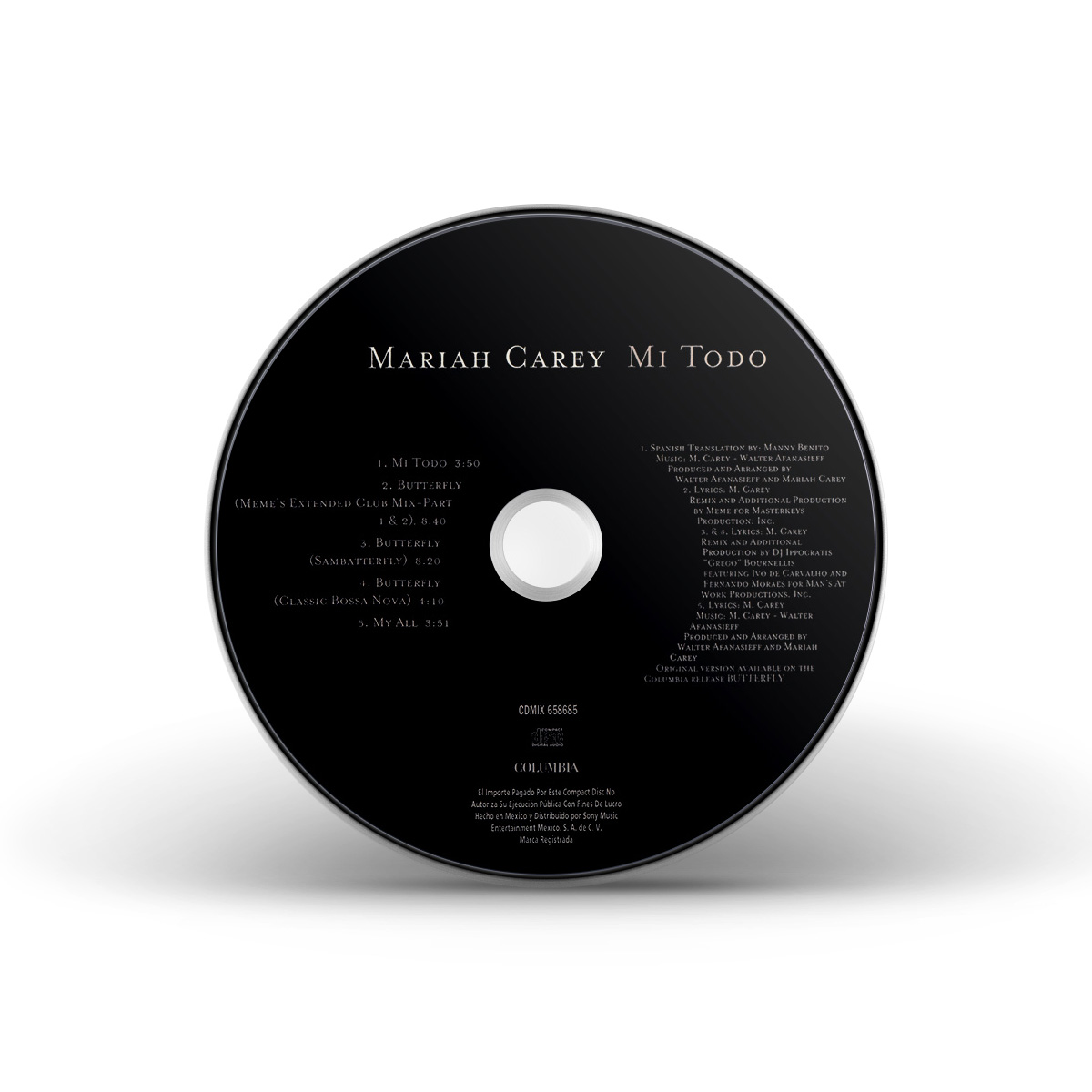 The Spanish version of “My All” was released in Mexico. The CD Maxi Single includes “Mi Todo,” three Latin remixes of “Butterfly” and “My All.”