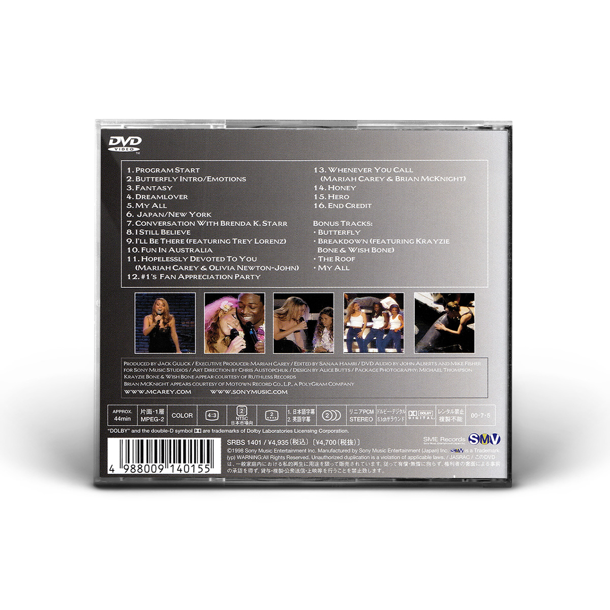 The home video also includes two performances at New York's intimate Spy Bar: “I Still Believe” and “Whenever You Call,” with Brian McKnight; as well as backstage footage from Mariah's massive in-store appearance at New York's Virgin Megastore and her party for fans at Webster Hall celebrating the release of #1's.