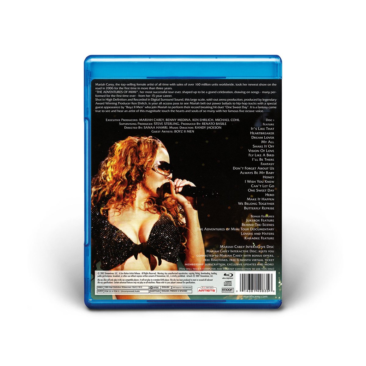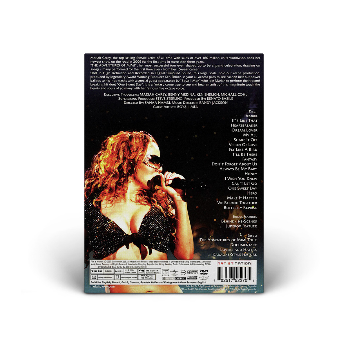 The Adventures Of Mimi Tour, Mariah's most successful tour ever, took her on the road in 2006 for the first time in more than three years. The concert, taped in Anaheim, California, on October 6, 2006, includes Mariah's biggest hits and a special appearance by Boyz II Men; who join her to perform their record-breaking hit duet “One Sweet Day.”