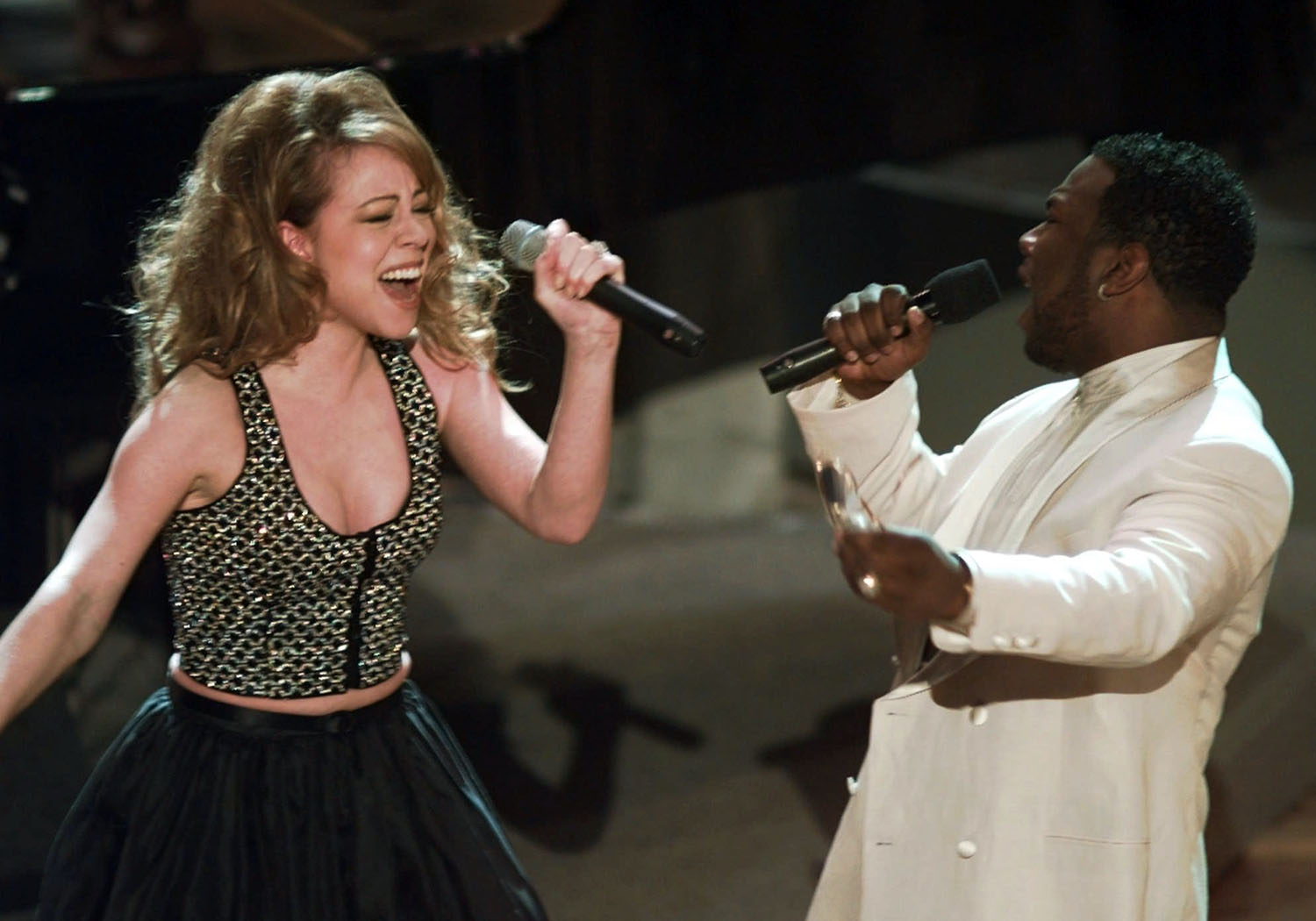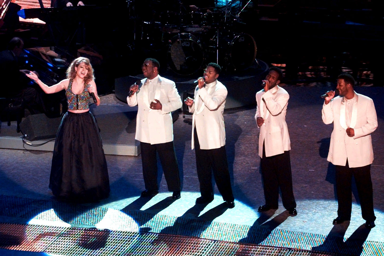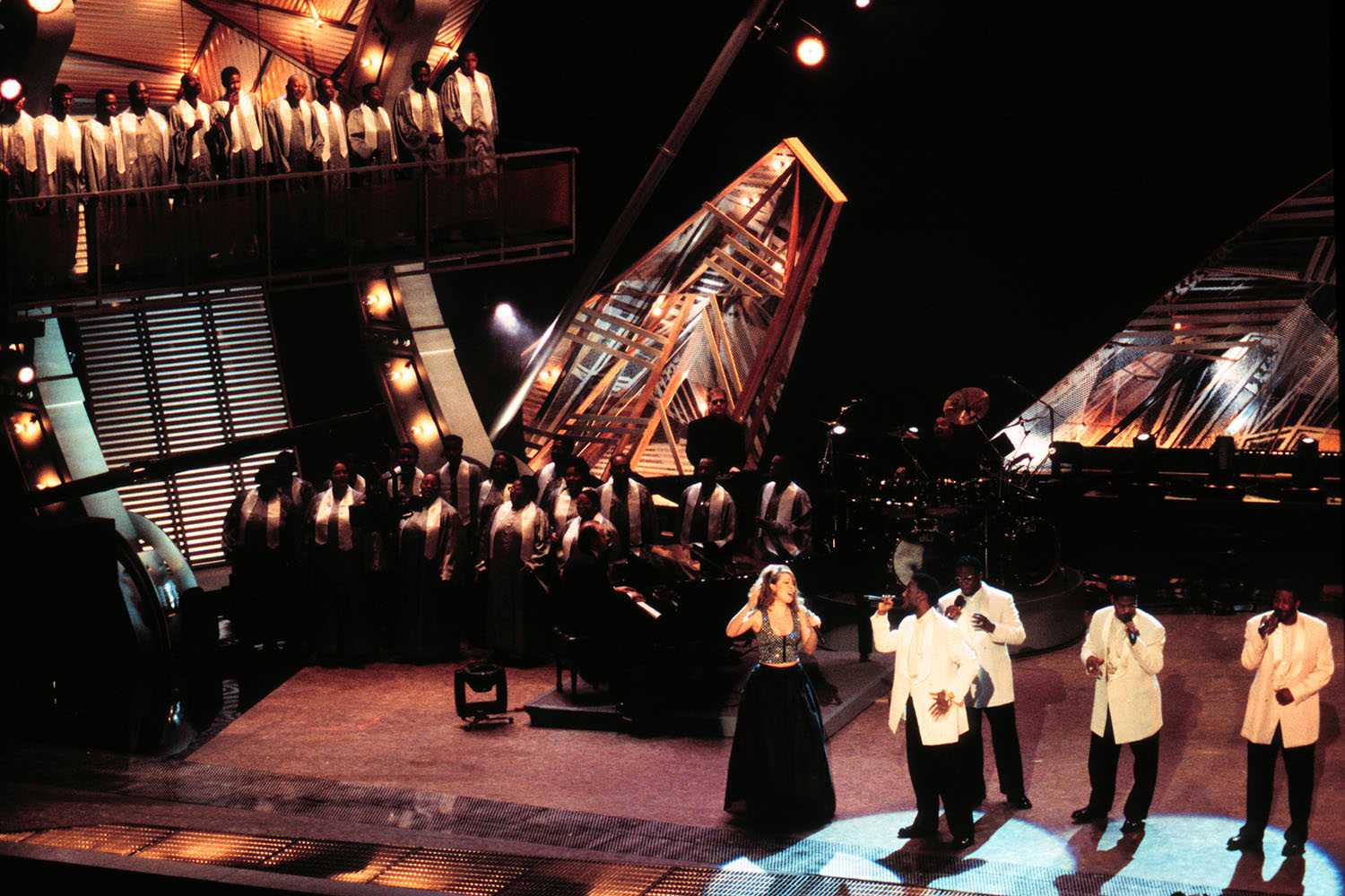 With six nominations each, Mariah and Alanis Morissette were the most nominated artists for the 38th annual Grammy Awards, which took place at the Shrine Auditorium in Los Angeles, CA on February 28, 1996. Mariah and Boyz II Men performed their record-breaking hit single “One Sweet Day,” but went home empty-handed.